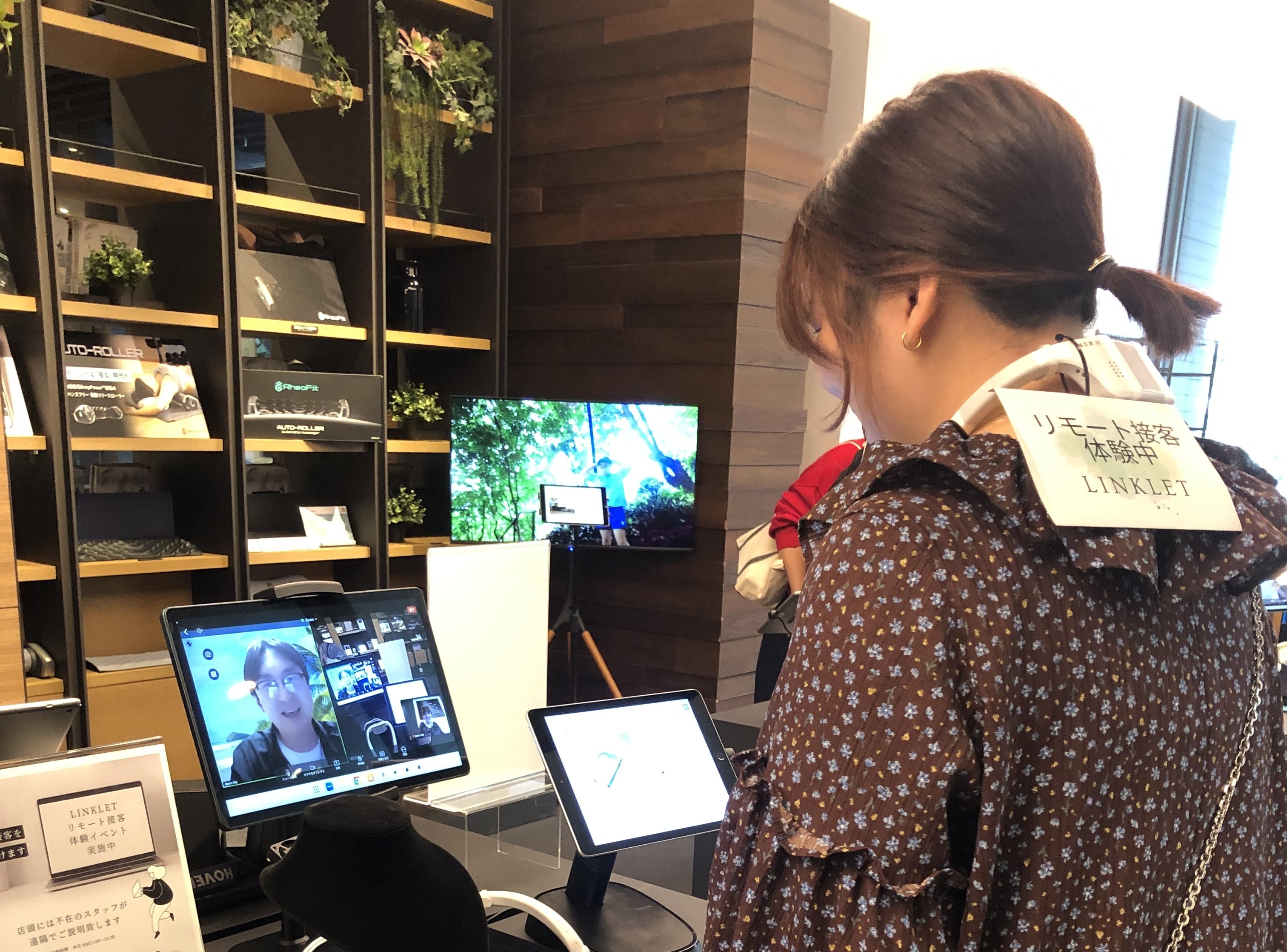 蔦屋家電+は、先進的な製品群を一同に集めて展示し、来店者には楽しく体験して頂きつつ、接客するスタッフが感想やご意見を引き出してメーカー側にフィードバックするショールームです。今回の取り組みでは、これまで製造業や保守メンテンナスなどのビジネス領域で提供していたLINKLETの「リモート支援」の仕組みを、蔦屋家電+の「接客」に応用することで、LINKLET自体の製品利用とともに、他社製品のリモート接客も体験できる展示を実現いたしました。